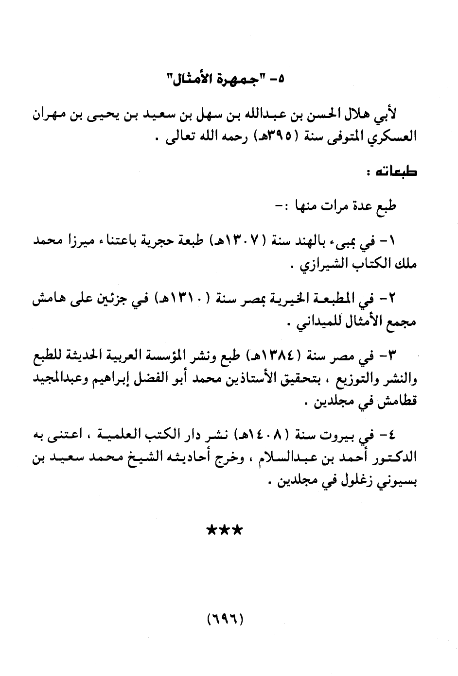 2 ـ في المطبعة الخيرية بمصر سنة (1310هـ) في جزئين على هامش مجمع الأمثال للميداني.