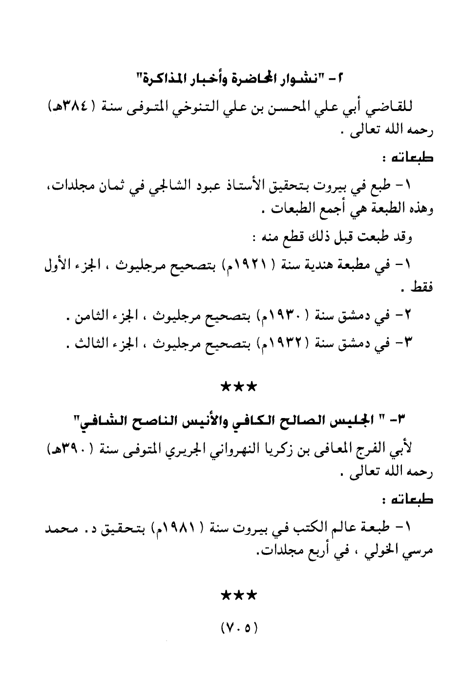 3 ـ في دمشق سنة (1932م) بتصحيح مرجليوث، الجزء الثالث.
