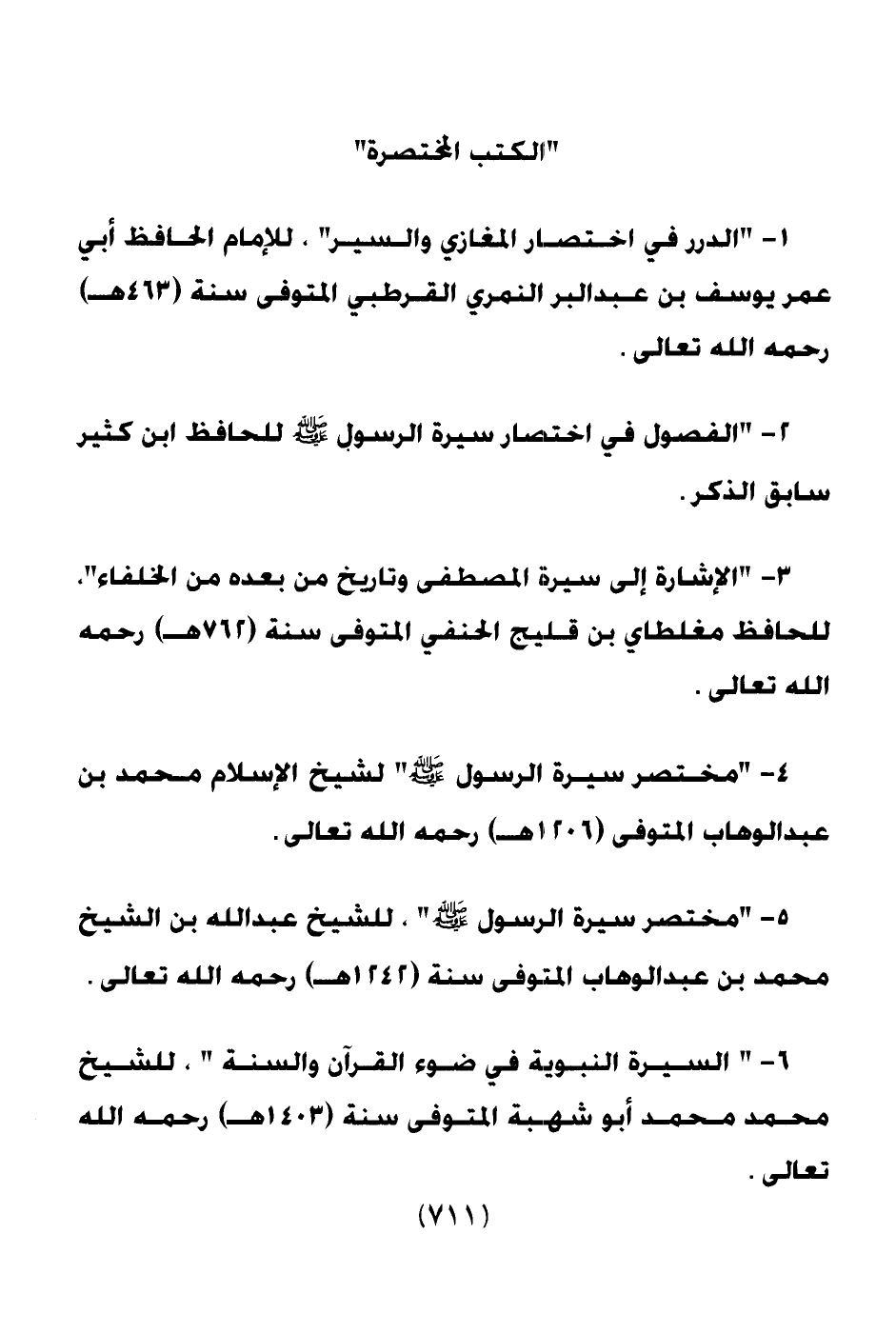 5 ـ " مختصر سيرة الرسول صلى الله عليه وسلم " للشيخ عبد الله بن الشيخ محمد بن عبد الوهاب المتوفي سنة (1242هـ) رحمه الله تعالى.