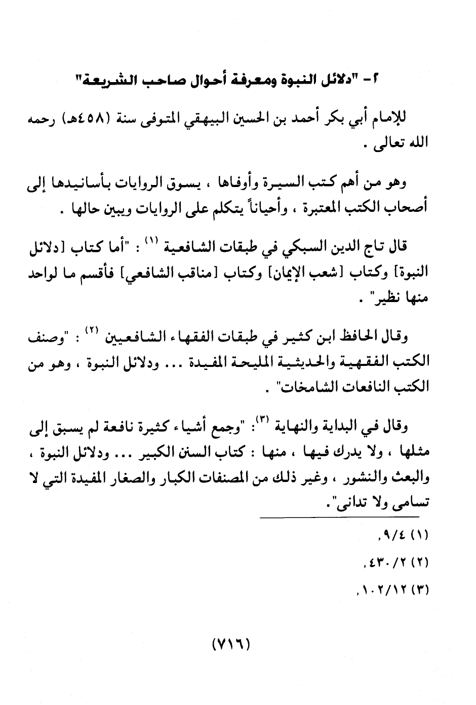 وقال الحافظ ابن كثير في طبقات الفقهاء الشافعيين (¬2) : " وصنف الكتب الفقهية والحديثية المليحة المفيدة ... ودلائل النبوة، وهو من الكتب النافعات الشامخات".