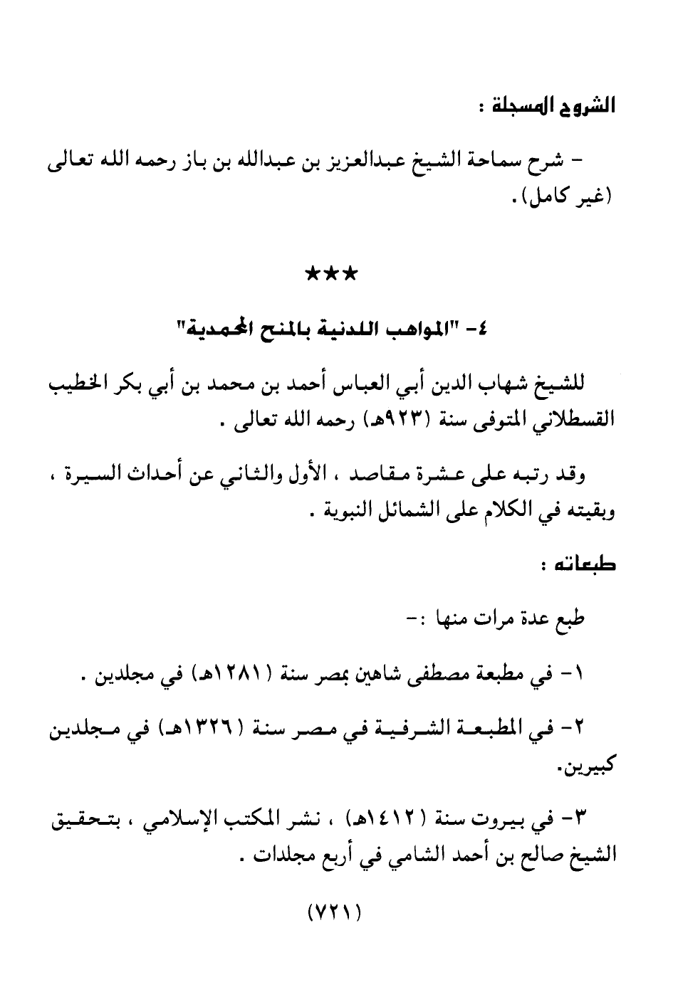 4 ـ " المواهب اللدنية بالمنح المحمدية "