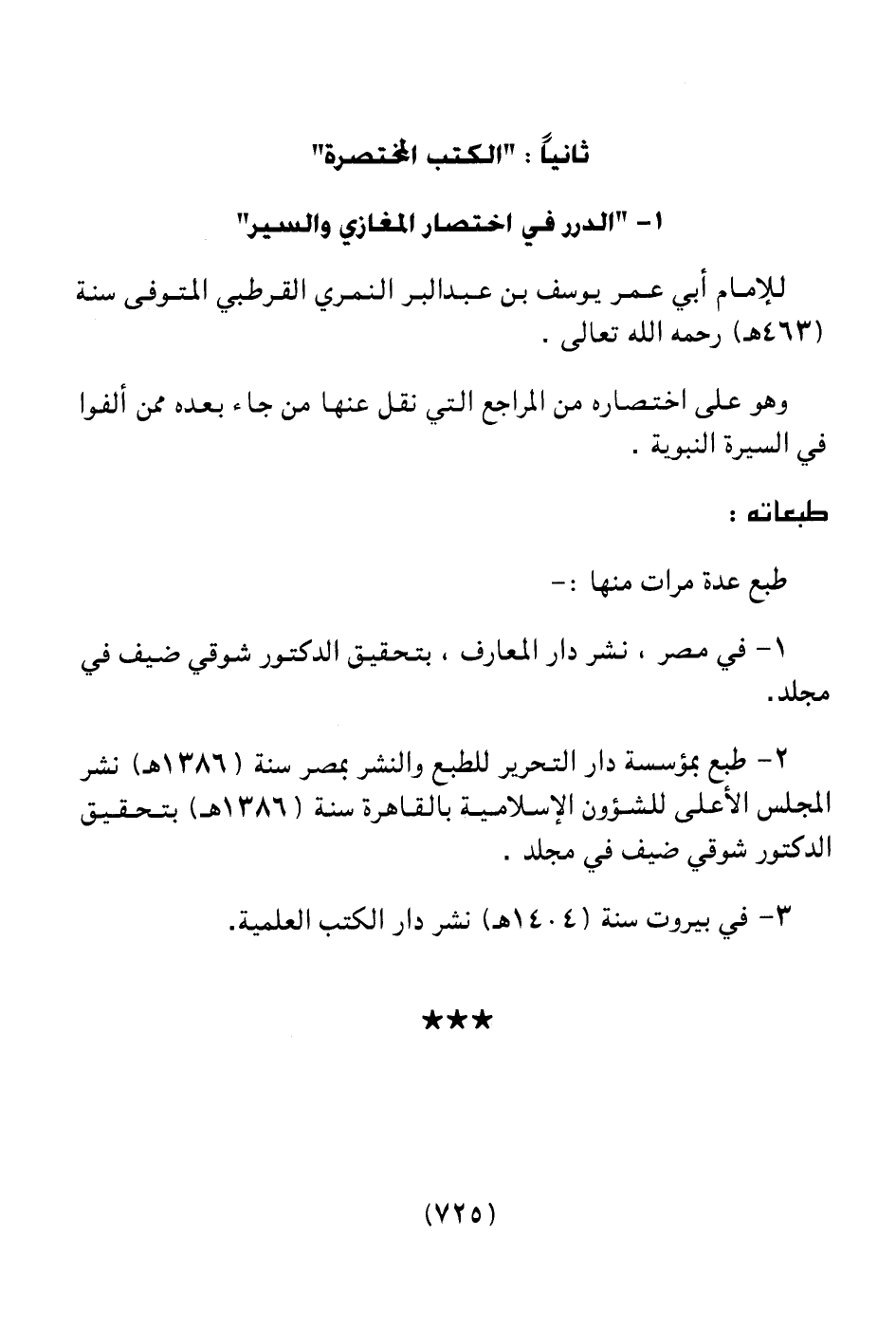 3 ـ في بيروت سنة (1404هـ) نشر دار الكتب العلمية.