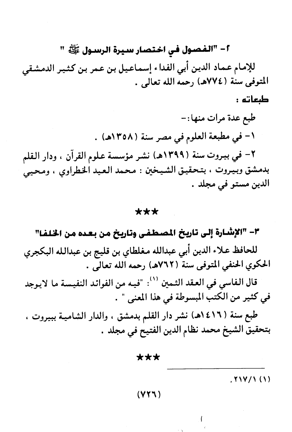 للإمام عماد الدين أبي الفداء إسماعيل بن عمر بن كثير الدمشقي المتوفي سنة (774هـ) رحمه الله تعالى.