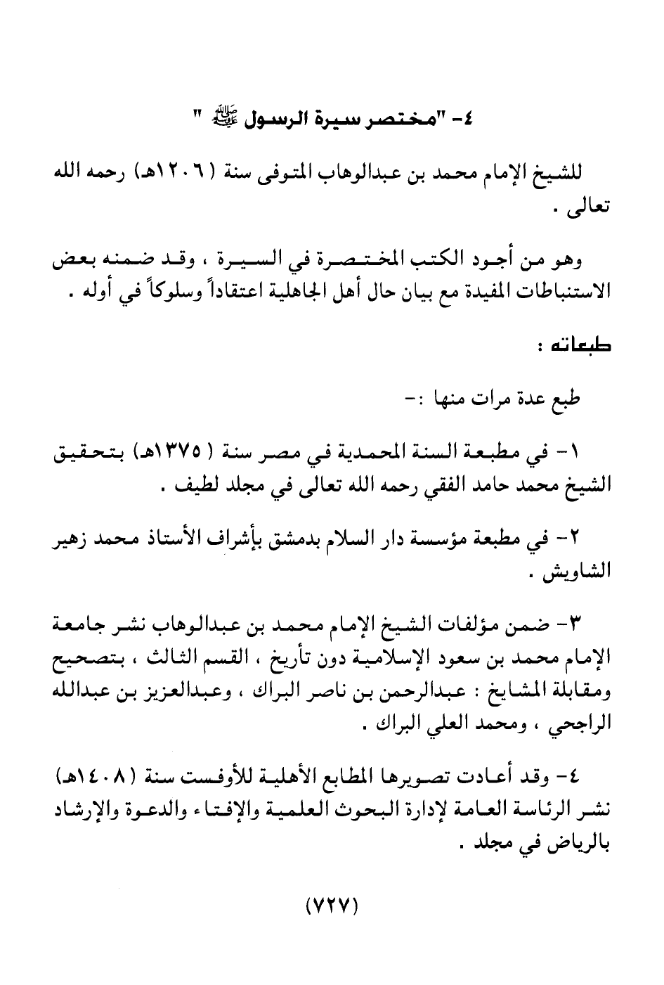 4 ـ " مختصر سيرة الرسول صلى الله عليه وسلم.