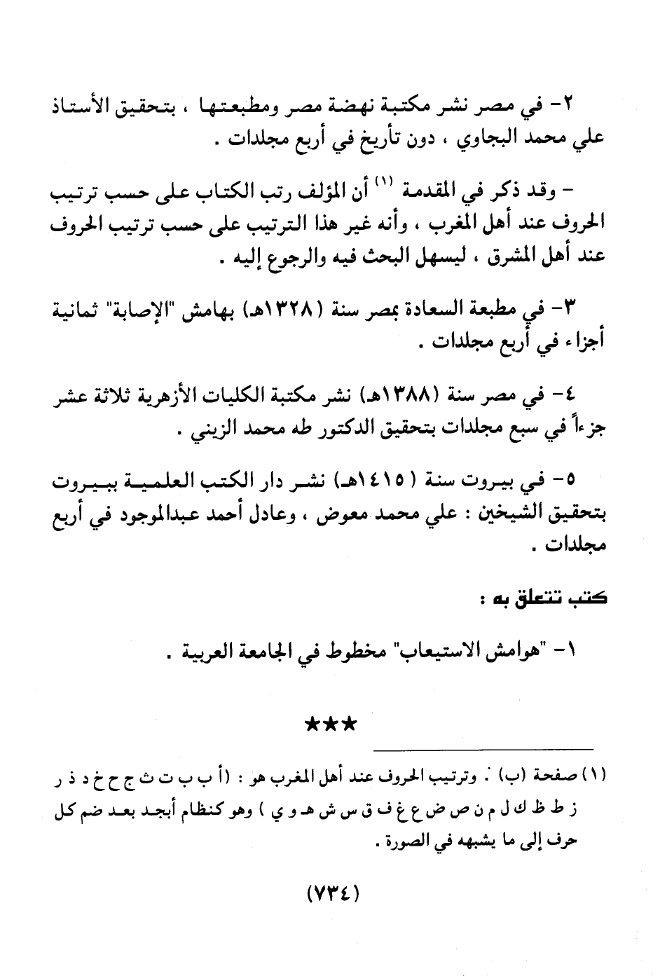 (¬1) صفحة (ب) وترتيب الحروف عند أهل المغرب هو: (أب ب ت ث ج ح خ د ذ ر ز ط ظ ك ل م ن ص ض ع غ ف ق س ش هـ وي) وهو كنظام أبجد بعد ضم كل حرف إلى مايشبهه في الصورة.