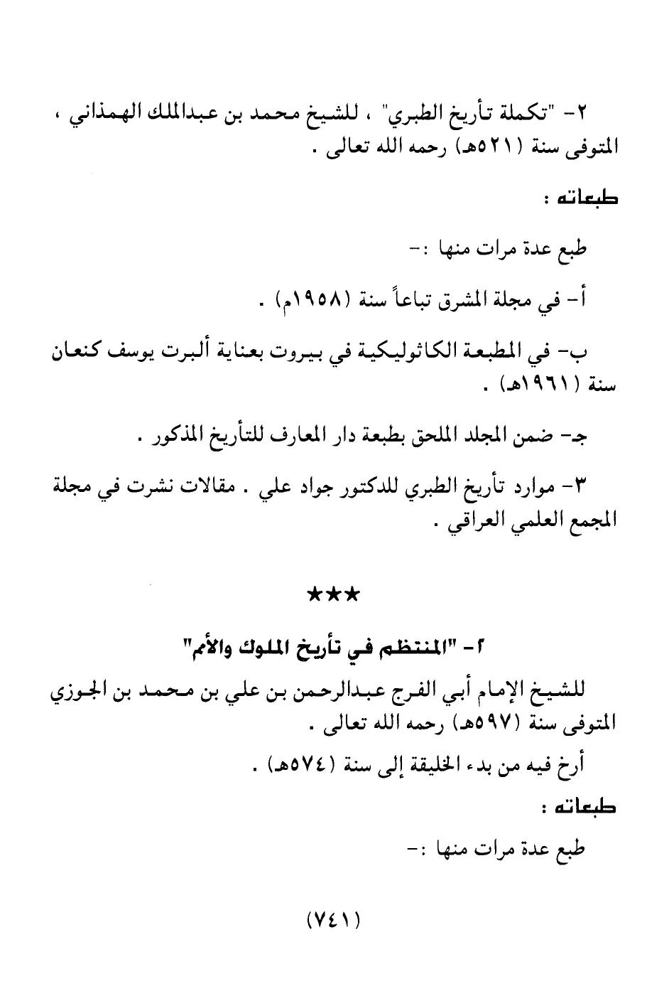 2 ـ " تكملة تاريخ الطبري " للشيخ محمد بن عبد الملك الهمذاني المتوفي سنة (521هـ) رحمه الله تعالى.
