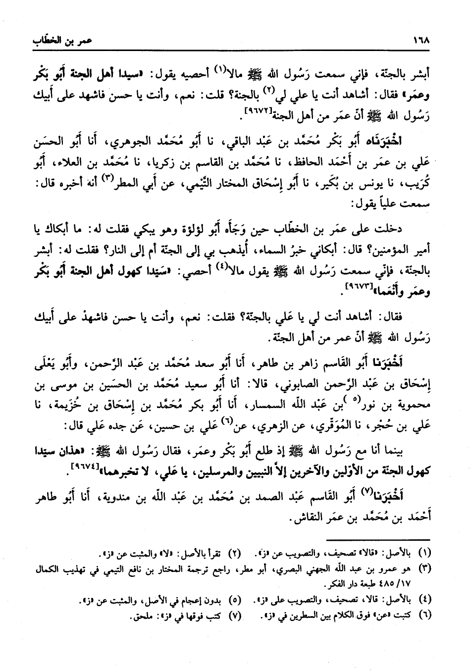 [9672] أخبرناه أبو بكر محمد بن عبد الباقي نا أبو محمد الجوهري أنا أبو الحسن علي بن عمر بن أحمد الحافظ نا محمد بن القاسم بن زكريا نا محمد بن العلاء أبو كريب نا يونس بن بكير نا أبو إسحاق المختار التيمي عن أبي المطر (3) أنه أخبره قال سمعت عليا يقول دخلت على عمر بن الخطاب حين وجأه أبو لؤلؤة وهو يبكي فقلت له ما أبكاك يا أمير المؤمنين قال أبكاني خبر السماء أيذهب بي إلى الجنة أم إلى النار فقلت له أبشر بالجنة فإني سمعت رسول الله (صلى الله عليه وسلم) يقول مالا (4) أحصي سيدا كهول أهل الجنة أبو بكر وعمر وأنعما