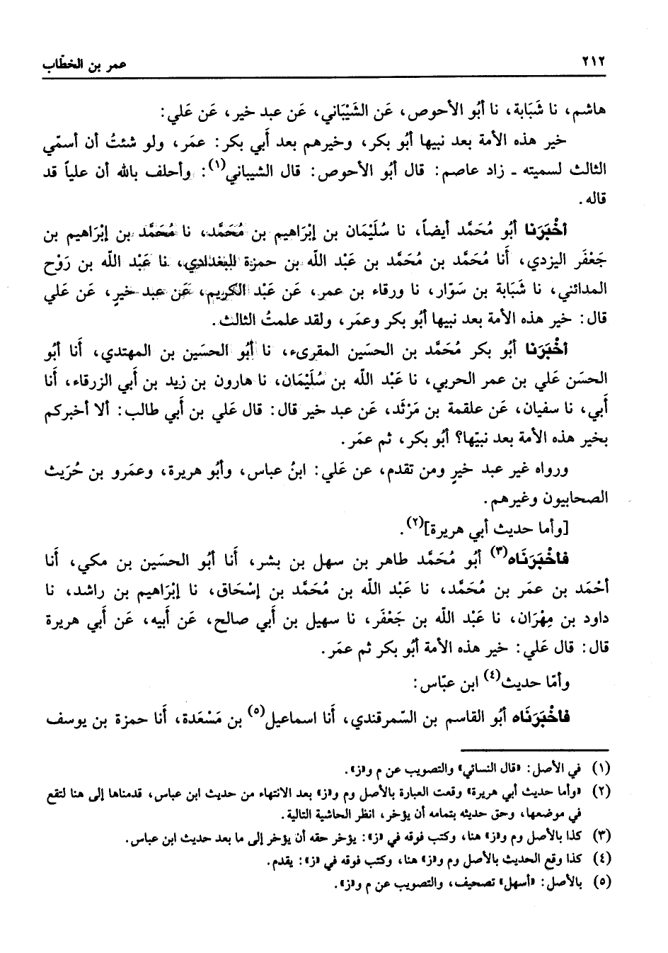 هاشم نا شبابة نا أبو الأحوص عن الشيباني عن عبد خير عن علي خير هذه الأمة بعد نبيها أبو بكر وخيرهم بعد أبي بكر عمر ولو شئت أن أسمي الثالث لسميته زاد عاصم قال أبو الأحوص قال الشيباني (1) وأحلف بالله أن عليا قد قاله أخبرنا أبو محمد أيضا نا سليمان بن إبراهيم بن محمد نا محمد بن إبراهيم بن جعفر اليزدي أنا محمد بن محمد بن عبد الله بن حمزة البغدادي نا عبد الله بن روح المدائني نا شبابة بن سوار نا ورقاء بن عمر عن عبد الكريم عن عبد خير عن علي قال خير هذه الأمة بعد نبيها أبو بكر وعمر ولقد علمت الثالث أخبرنا أبو بكر محمد بن الحسين المقرئ نا أبو الحسين بن المهتدي أنا أبو الحسن علي بن عمر الحربي نا عبد الله بن سليمان نا هارون بن زيد بن أبي الزرقاء أنا أبي نا سفيان عن علقمة بن مرثد عن عبد خير قال قال علي بن أبي طالب ألا أخبركم بخير هذه الامة بعد نبيها أبو بكر ثم عمر ورواه غير عبد خير ومن تقدم عن علي ابن عباس وأبو هريرة وعمرو بن حريث الصحابيون وغيرهم وأما حديث أبي هريرة (2) فأخبرناه (3) أبو محمد طاهر بن سهل بن بشر أنا أبو الحسين بن مكي أنا أحمد بن عمر بن محمد نا عبد الله بن محمد بن إسحاق نا إبراهيم بن راشد نا داود بن مهران نا عبد الله بن جعفر نا سهيل بن أبي صالح عن أبيه عن أبي هريرة قال قال علي خير هذه الأمة أبو بكر ثم عمر وأما حديث (4) ابن عباس فأخبرناه أبو القاسم بن السمرقندي أنا إسماعيل (5) بن مسعدة أنا حمزة بن يوسف