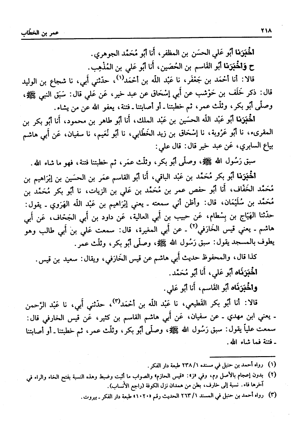 (1) رواه أحمد بن حنبل في مسنده 1 / 238 طبعة دار الفكر