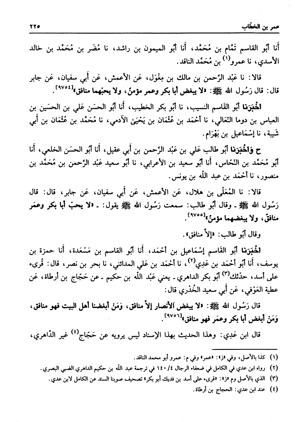 [9755] وقال أبو طالب إلا منافق أخبرنا أبو القاسم إسماعيل بن أحمد أنا أبو القاسم بن مسعدة أنا حمزة بن يوسف أنا أبو أحمد بن عدي (2) نا أحمد بن علي المدائني نا بحر بن نصر قال قرئ على أسد حدثك (3) أبو بكر الداهري يعني عبد الله بن حكيم عن حجاج بن أرطاة عن عطية العوفي عن أبي سعيد الخدري قال قال رسول الله (صلى الله عليه وسلم) لا يبغض الأنصار إلا منافق ومن أبغضنا أهل البيت فهو منافق ومن أبغض أبا بكر وعمر فهو منافق