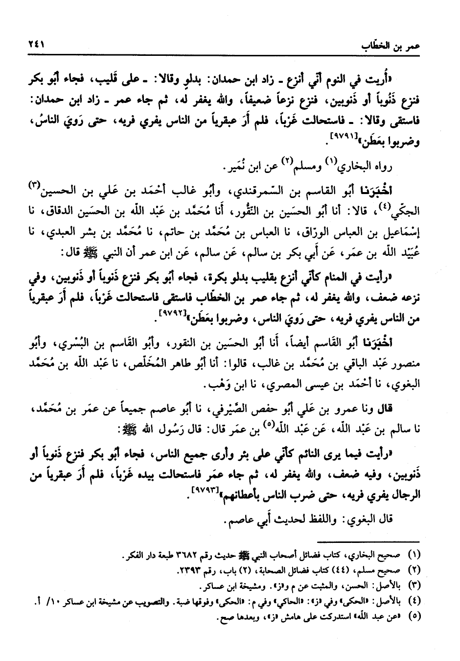 (1) صحيح البخاري كتاب فضائل أصحاب النبي صلى الله عليه وسلم حديث رقم 3682 طبعة دار الفكر