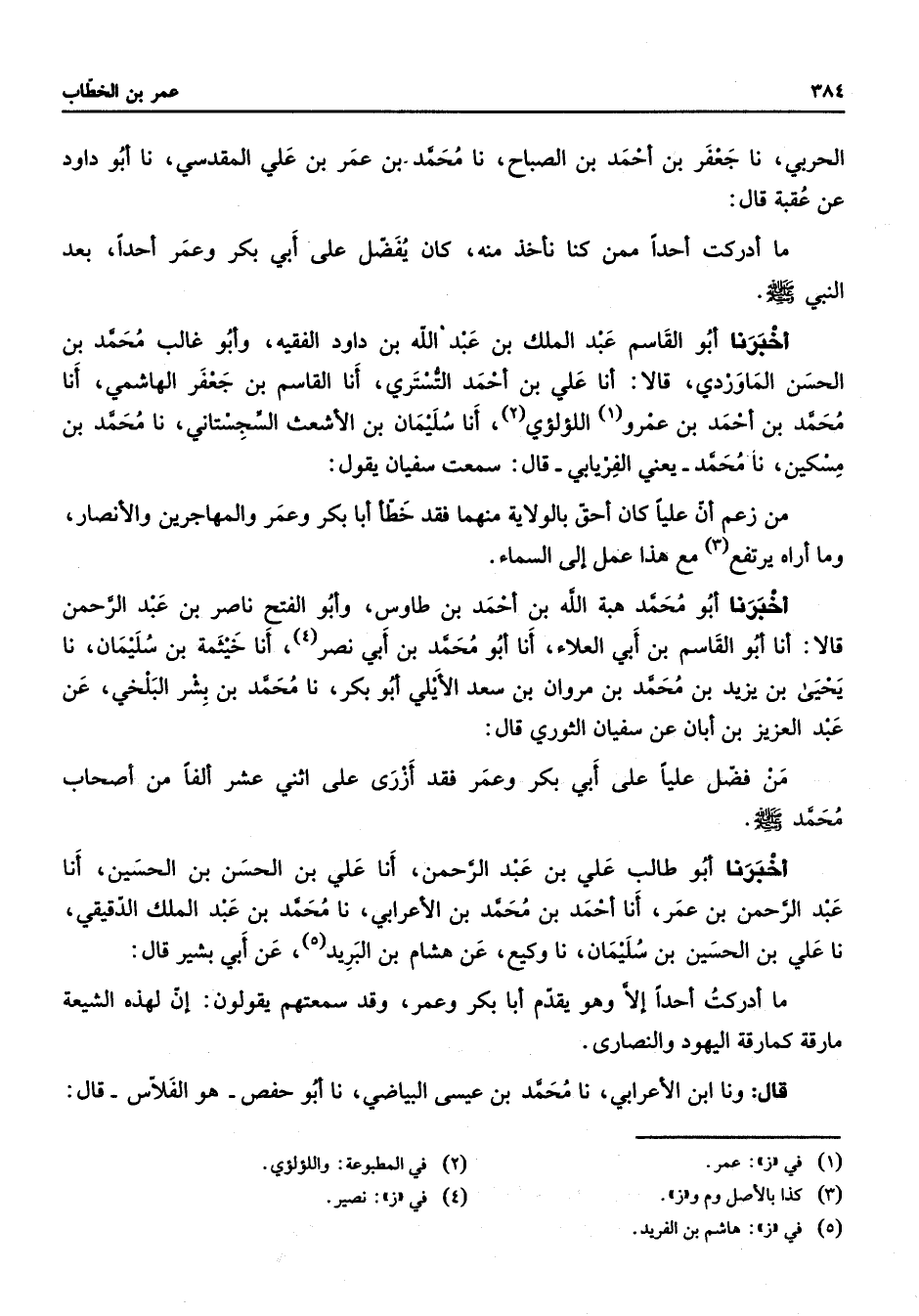الحربي نا جعفر بن أحمد بن الصباح نا محمد بن عمر بن علي المقدسي نا أبو داود عن عقبة قال ما أدركت أحدا ممن كنا نأخذ منه كان يفضل على أبي بكر وعمر أحدا بعد النبي (صلى الله عليه وسلم) أخبرنا أبو القاسم عبد الملك بن عبد الله بن داود الفقيه وأبو غالب محمد بن الحسن الماوردي قالا أنا علي بن أحمد التستري أنا القاسم بن جعفر الهاشمي أنا محمد بن أحمد بن عمرو (1) اللؤلؤي (2) أنا سليمان بن الأشعث السجستاني نا محمد بن مسكين نا محمد يعني الفريابي قال سمعت سفيان يقول من زعم أن عليا كان أحق بالولاية منهما فقد خطأ أبا بكر وعمر والمهاجرين والأنصار وما أراه يرتفع (3) مع هذا عمل إلى السماء أخبرنا أبو محمد هبة الله بن أحمد بن طاوس وأبو الفتح ناصر بن عبد الرحمن قالا أنا أبو القاسم بن أبي العلاء أنا أبو محمد بن أبي نصر (4) أنا خيثمة بن سليمان نا يحيى بن يزيد بن محمد بن مروان بن سعد الأيلي أبو بكر نا محمد بن بشر البلخي عن عبد العزيز بن أبان عن سفيان الثوري قال من فضل عليا على أبي بكر وعمر فقد أزرى على اثني عشر ألفا من أصحاب محمد (صلى الله عليه وسلم) أخبرنا أبو طالب علي بن عبد الرحمن أنا علي بن الحسن بن الحسين أنا عبد الرحمن بن عمر أنا أحمد بن محمد بن الأعرابي نا محمد بن عبد الملك الدقيقي نا علي بن الحسين بن سليمان نا وكيع عن هشام بن البريد (5) عن أبي بشير قال ما أدركت أحدا إلا وهو يقدم أبا بكر وعمر وقد سمعتهم يقولون إن لهذه الشيعة مارقة كمارقة اليهود والنصارى قال ونا ابن الأعرابي نا محمد بن عيسى البياضي نا أبو حفص هو الفلاس قال