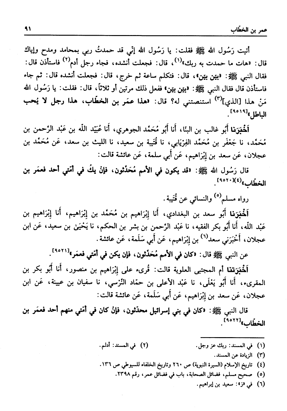 [9520] رواه مسلم (5) والنسائي عن قتيبة أخبرنا أبو سعد بن البغدادي أنا إبراهيم بن محمد بن إبراهيم أنا إبراهيم بن عبد الله أنا أبو بكر الفقيه نا عبد الرحمن بن بشر بن الحكم نا يحيى بن سعيد عن ابن عجلان أخبرني سعد (6) بن إبراهيم عن أبي سلمة عن عائشة عن النبي (صلى الله عليه وسلم) قال كان في الأمم محدثون فإن يكن في أمتي فعمر
