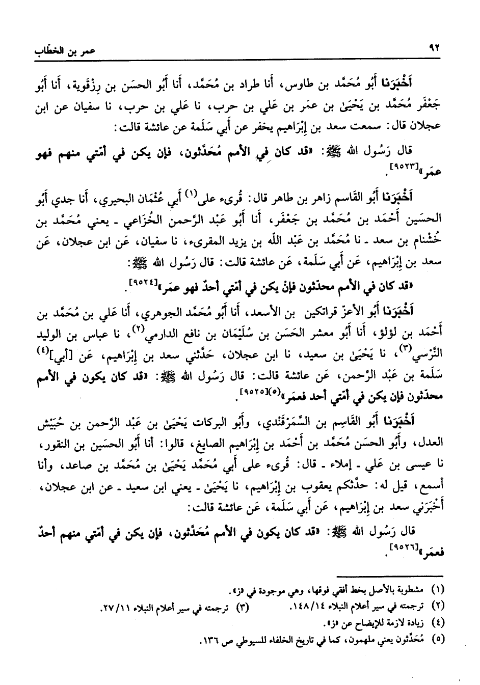 (5) محدثون يعني ملهمون كما في تاريخ الخلفاء للسيوطي ص 136