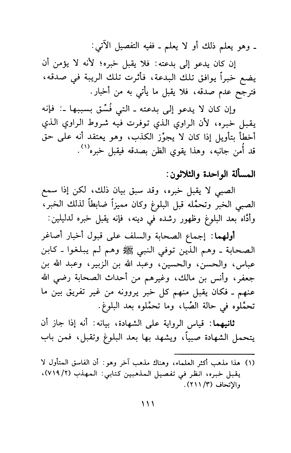 المسألة الواحدة والثلاثون: