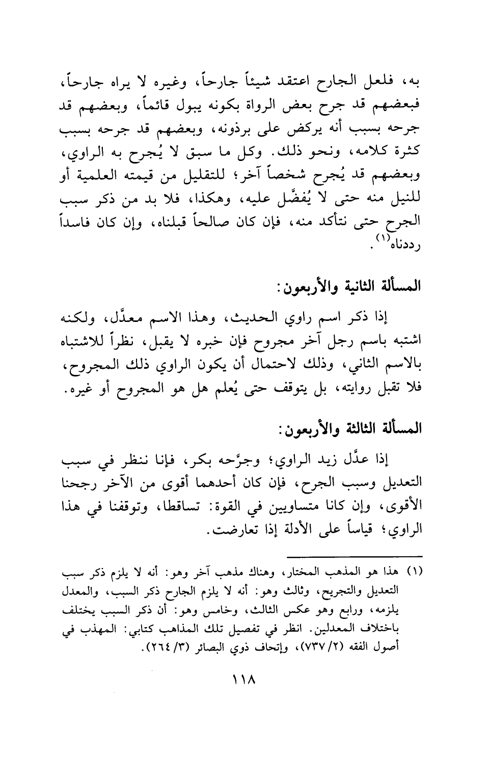 به، فلعل الجارح اعتقد شيئاً جارحاً، وغيره لا يراه جارحاً، فبعضهم قد جرح بعض الرواة بكونه يبول قائماً، وبعضهم قد جرحه بسبب أنه يركض على برذونه، وبعضهم قد جرحه بسبب كثرة كلامه، ونحو ذلك. وكل ما سبق لا يُجرح به الراوي، وبعضهم قد يُجرح شخصاً آخر؛ للتقليل من قيمته العلمية أو للنيل منه حتى لا يُفضَّل عليه، وهكذا، فلا بد من ذكر سبب الجرح حتى نتأكد منه، فإن كان صالحاً قبلناه، وإن كان فاسداً رددناه.