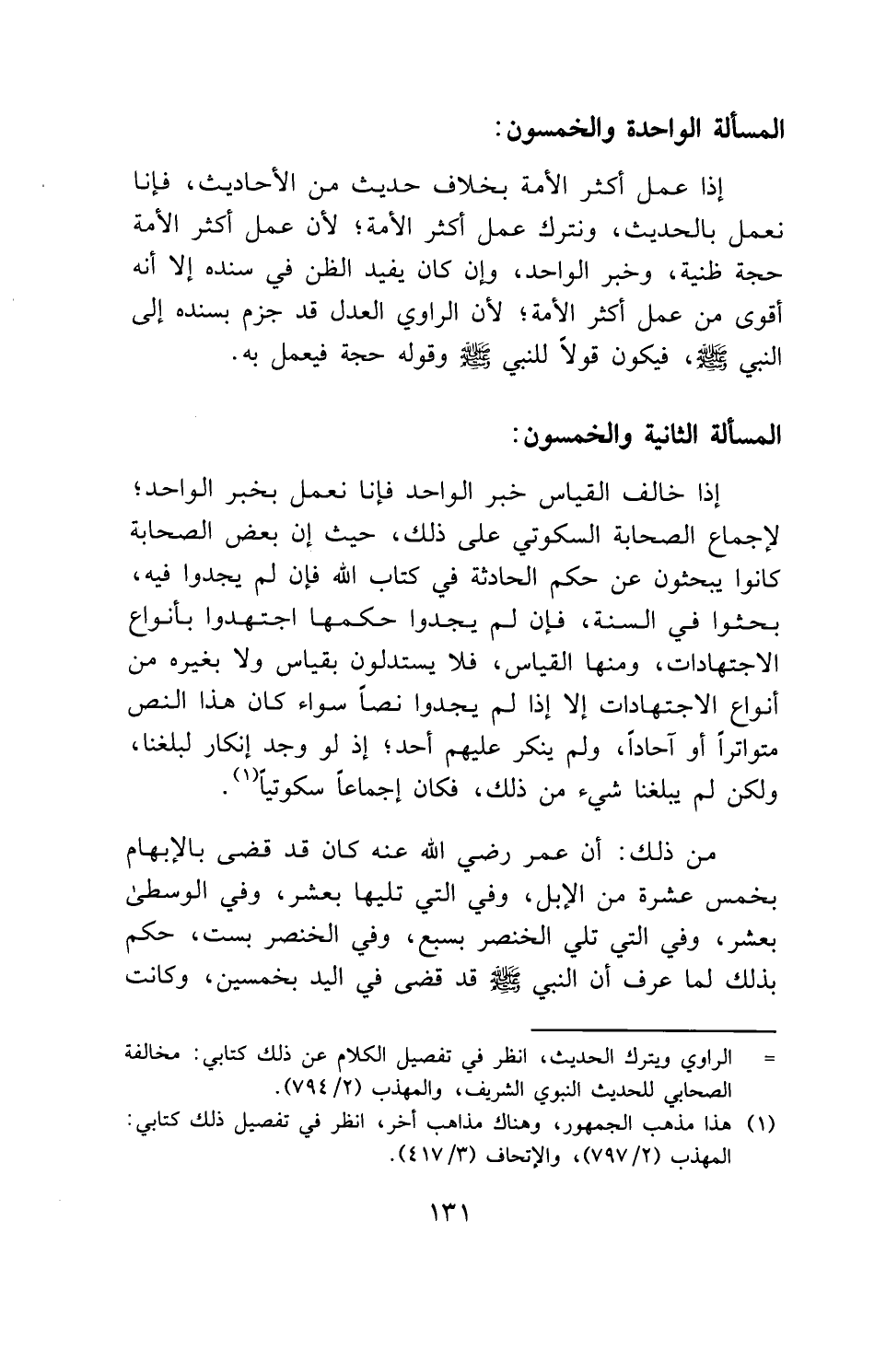 إذا عمل أكثر الأمة بخلاف حديث من الأحاديث، فإنا نعمل بالحديث، ونترك عمل أكثر الأمة؛ لأن عمل أكثر الأمة حجة ظنية، وخبر الواحد، وإن كان يفيد الظن في سنده إلا أنه أقوى من عمل أكثر الأمة؛ لأن الراوي العدل قد جزم بسنده إلى النبي - صلى الله عليه وسلم -، فيكون قولاً للنبي - صلى الله عليه وسلم - وقوله حجة فيعمل به.