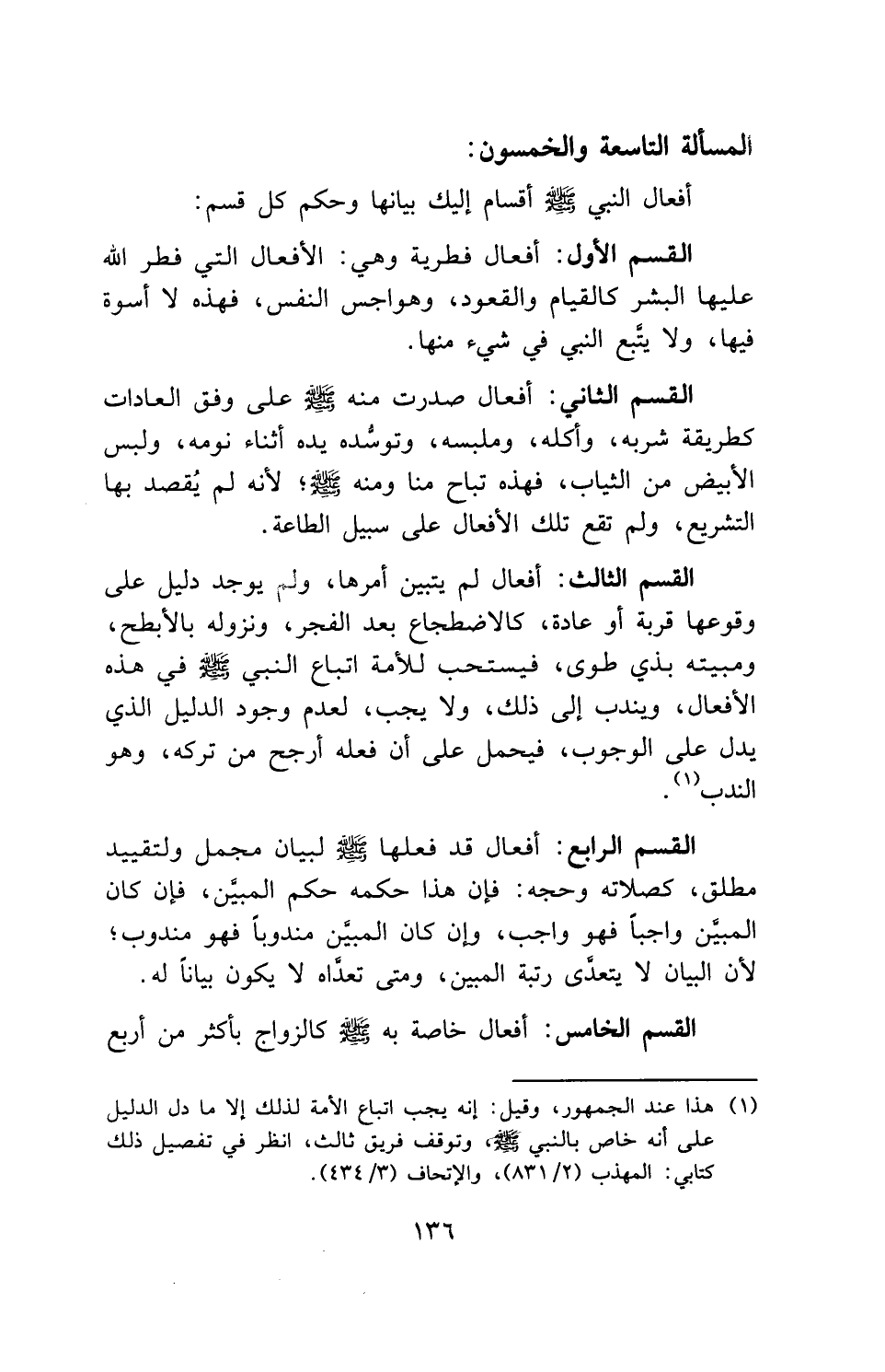 أفعال النبي - صلى الله عليه وسلم - أقسام إليك بيانها وحكم كل قسم: