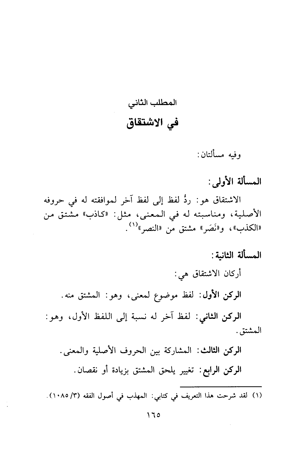 الركن الثاني: لفظ آخر له نسبة إلى اللفظ الأول، وهو: المشتق.