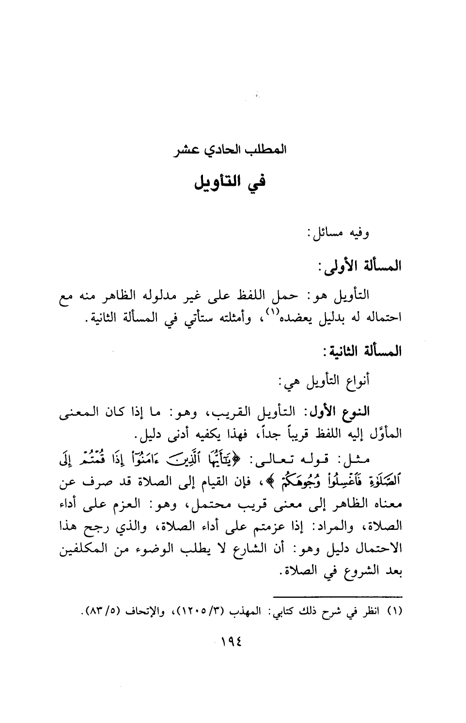النوع الأول: التأويل القريب، وهو: ما إذا كان المعنى المأؤَل إليه اللفظ قريباً جداً، فهذا يكفيه أدنى دليل.