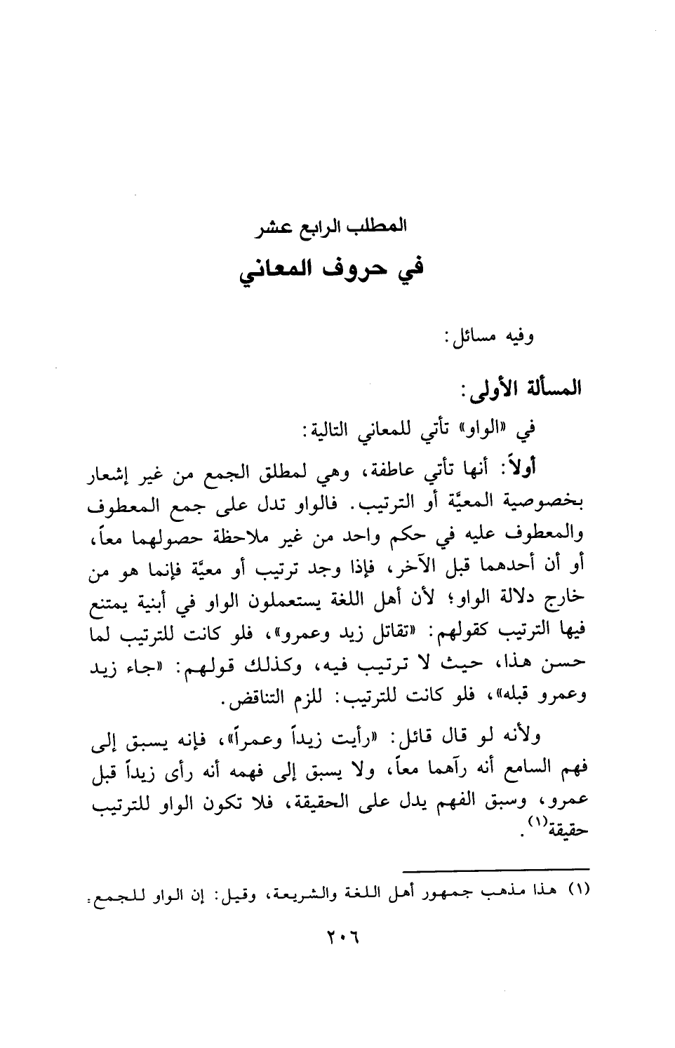 ولأنه لو قال قائل: " رأيت زيداً وعمراً "، فإنه يسبق إلى فهم السامع أنه رآهما معاً، ولا يسبق إلى فهمه أنه رأى زيداً قبل عمرو، وسبق الفهم يدل على الحقيقة، فلا تكون الواو للترتيب حقيقة.