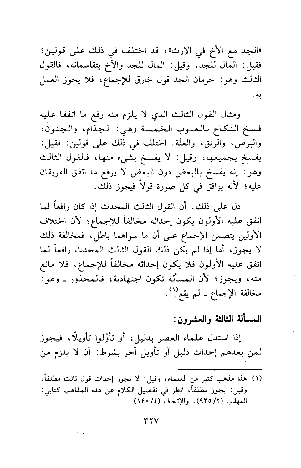 إذا استدل علماء العصر بدليل، أو تأولوا تأويلاً، فيجوز لمن بعدهم إحداث دليل أو تأويل آخر بشرط: أن لا يلزم من