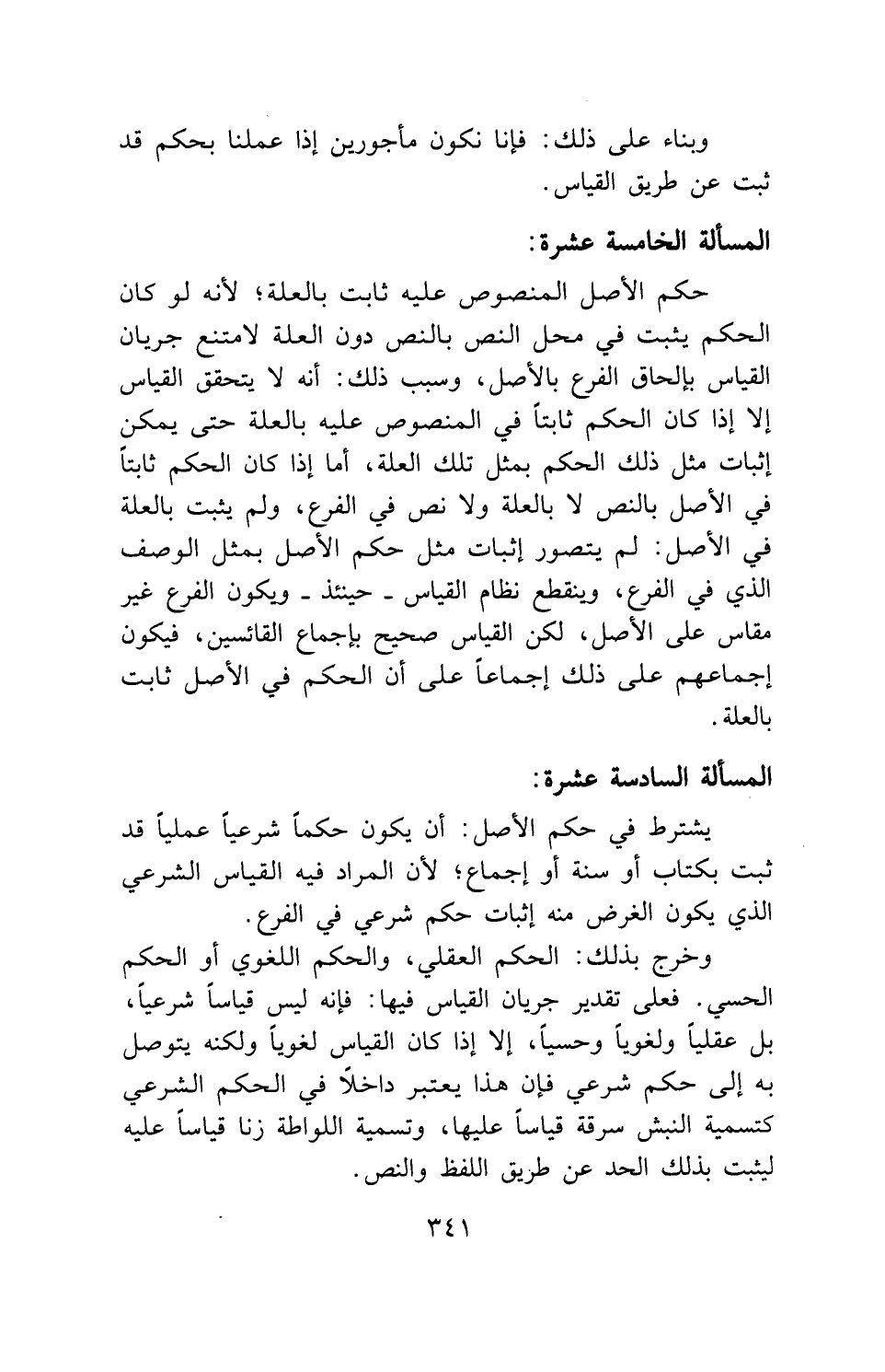 حكم الأصل المنصوص عليه ثابت بالعلة؛ لأنه لو كان الحكم يثبت في محل النص بالنص دون العلة لامتنع جريان القياس بإلحاق الفرع بالأصل، وسبب ذلك: أنه لا يتحقق القياس إلا إذا كان الحكم ثابتاً في المنصوص عليه بالعلة حتى يمكن إثبات مثل ذلك الحكم بمثل تلك العلة، أما إذا كان الحكم ثابتاً في الأصل بالنص لا بالعلة ولا نص في الفرع، ولم يثبت بالعلة في الأصل: لم يتصور إثبات مثل حكم الأصل بمثل الوصف الذي في الفرع، وينقطع نظام القياس - حينئذ - ويكون الفرع غير مقاس على الأصل، لكن القياس صحيح بإجماع القائسين، فيكون إجماعهم على ذلك إجماعاً على أن الحكم في الأصل ثابت بالعلة.
