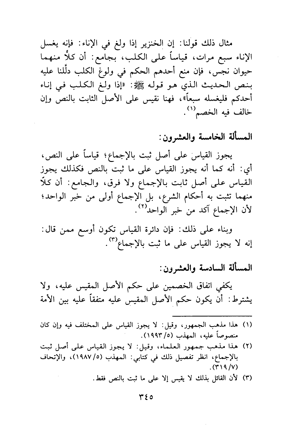 يكفي اتفاق الخصمين على حكم الأصل المقيس عليه، ولا يشترط: أن يكون حكم الأصل المقيس عليه متفقاً عليه بين الأمة
