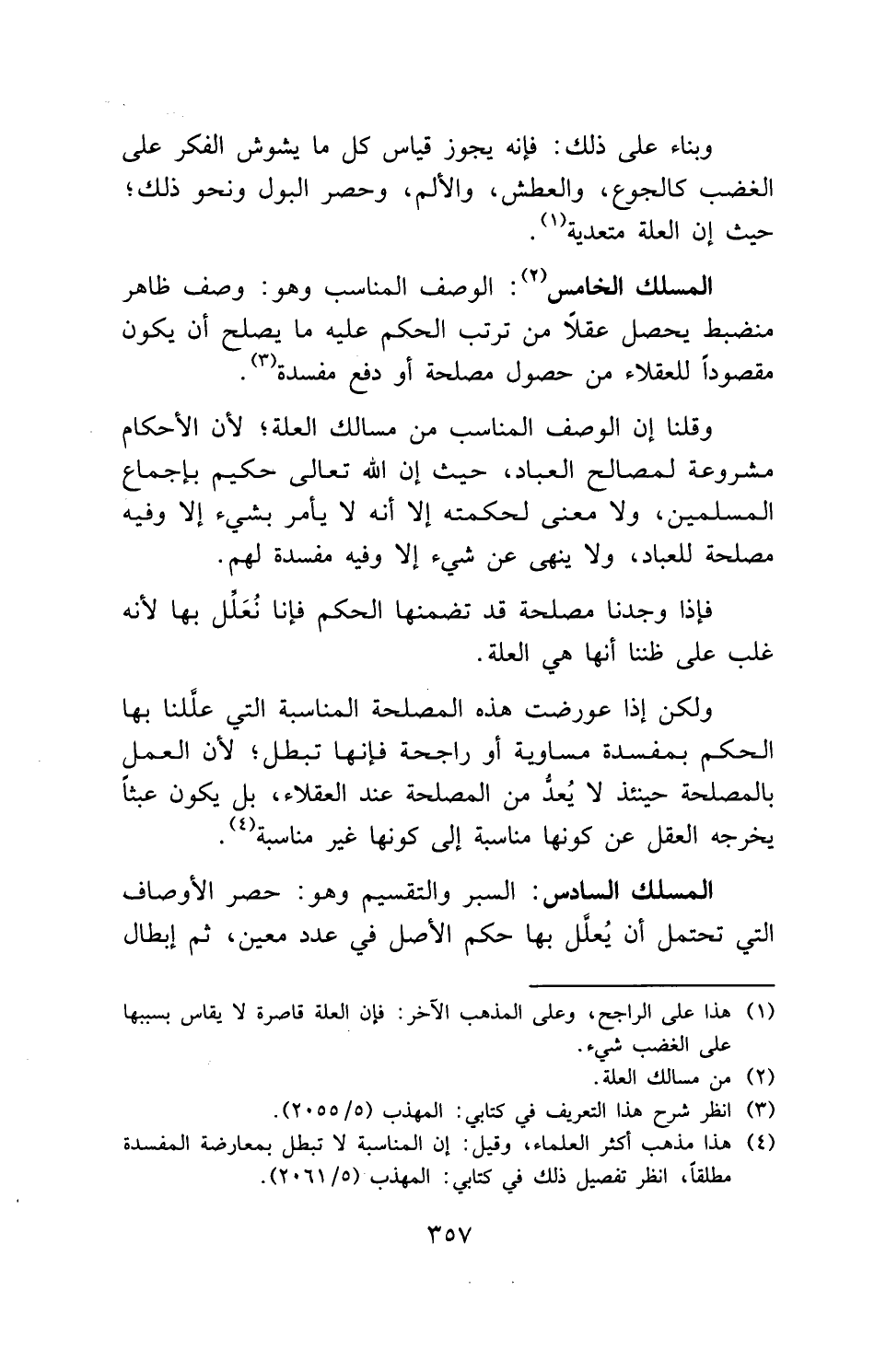 المسلك السادس: السبر والتقسيم وهو: حصر الأوصاف التي تحتمل أن يُعلَّل بها حكم الأصل في عدد معين، ثم إبطال