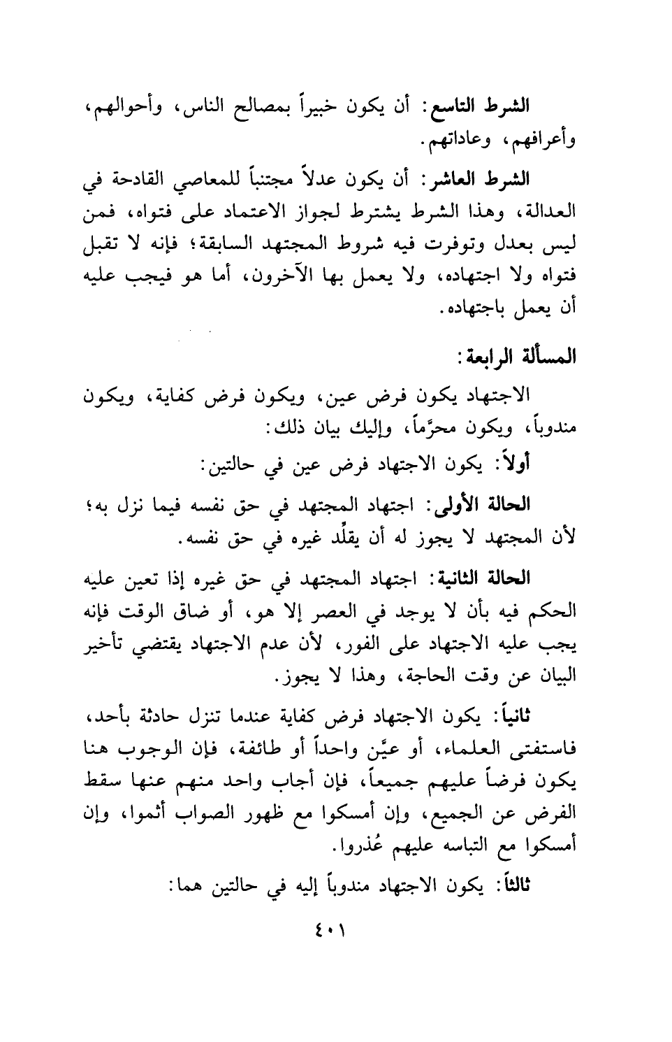 الاجتهاد يكون فرض عين، ويكون فرض كفاية، ويكون مندوباً، ويكون محرماً، وإليك بيان ذلك: