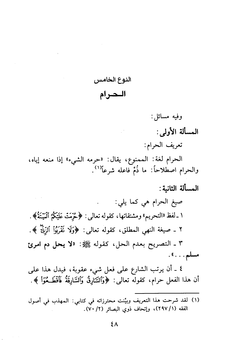 الحرام لغة: الممنوع، يقال: " حرمه الشيء " إذا منعه إياه، والحرام اصطلاحاً: ما ذُم فاعله شرعاً.