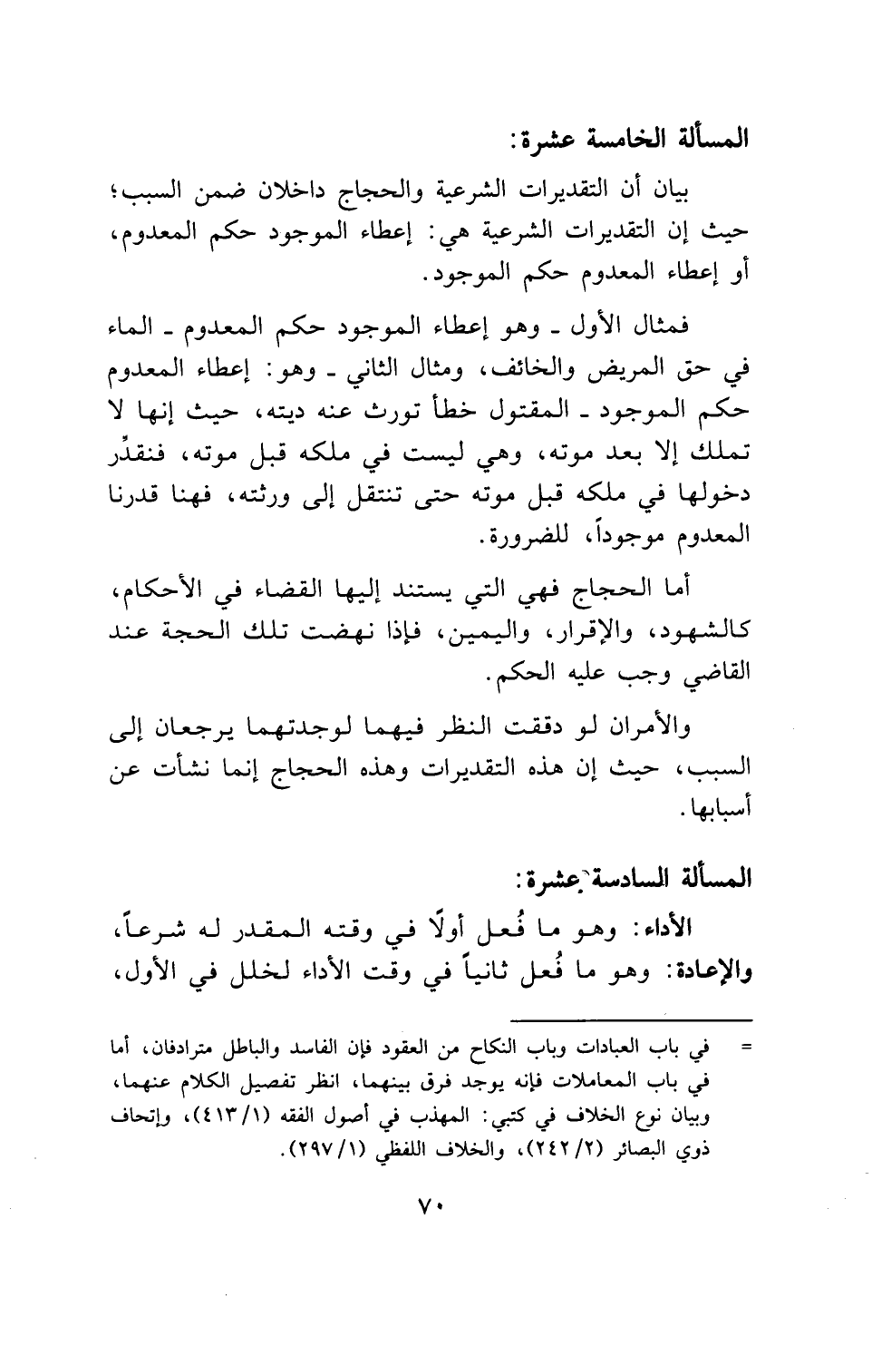 بيان أن التقديرات الشرعية والحجاج داخلان ضمن السبب؛ حيث إن التقديرات الشرعية هي: إعطاء الموجود حكم المعدوم، أو إعطاء المعدوم حكم الموجود.