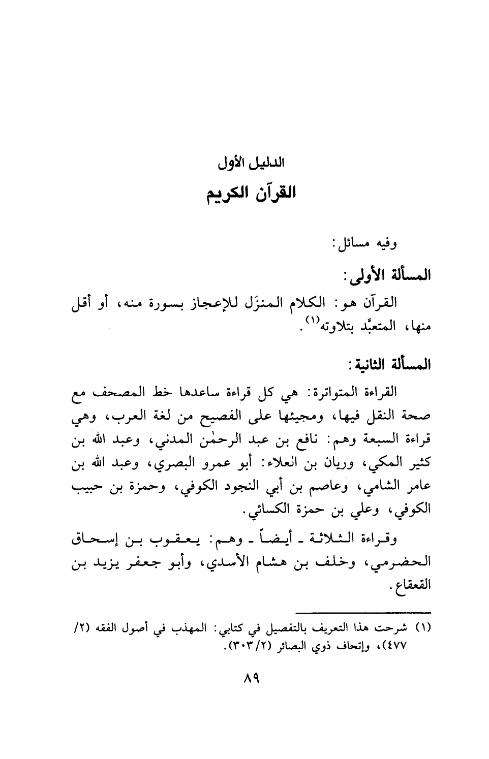 القرآن هو: الكلام المنزَّل للإعجاز بسورة منه، أو أقل منها، المتعبد بتلاوته.
