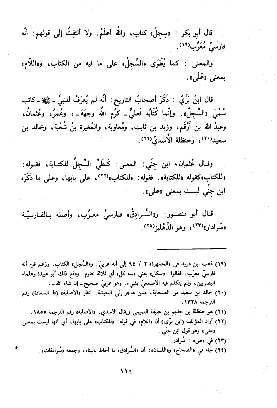 قَالَ أَبُو بكر سجل كتاب وَالله أعلم وَلَا ألتفت إِلَى قَوْلهم أَنه فَارسي مُعرب