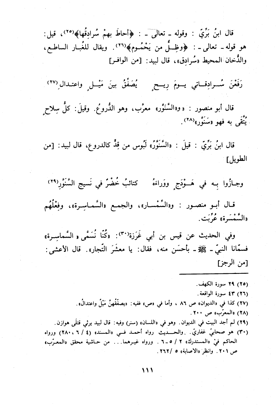 قَالَ ابْن بري قيل السنور لبوس من قد كالدروع قَالَ لبيد