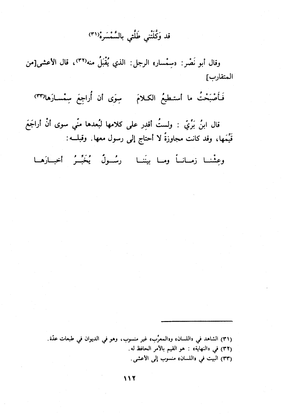 (فَأَصْبَحت مَا أَسْتَطِيع الْكَلَام ... سوى أَن أراجع سمسارها) // من المتقارب //