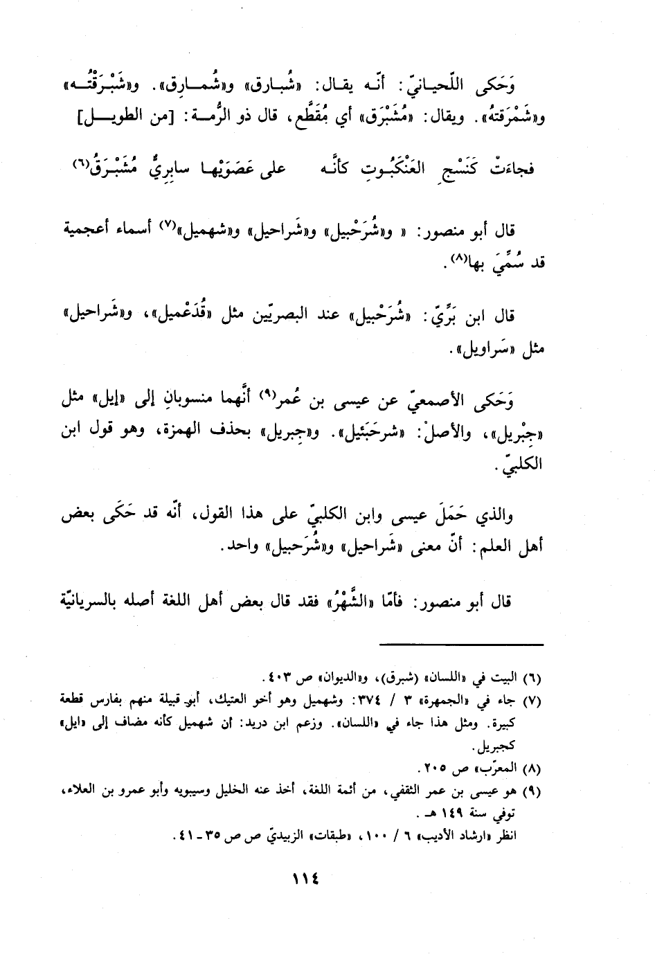 قَالَ أَبُو مَنْصُور وشرحبيل وشراحيل وشهميل أَسمَاء أَعْجَمِيَّة قد سمي بهَا