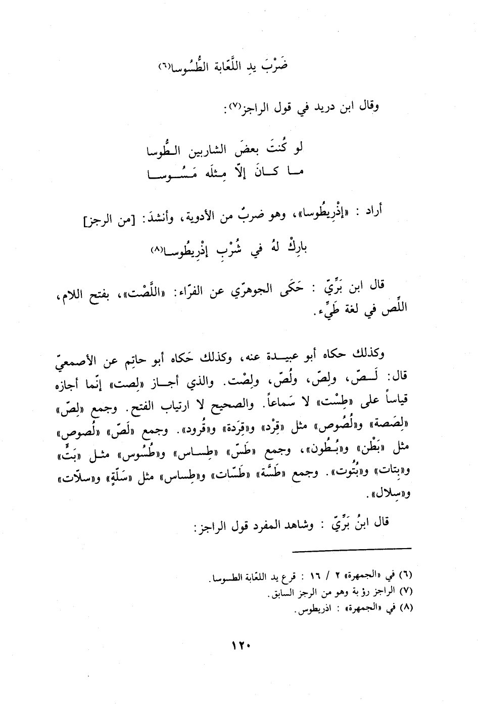 (لَو كنت بعض الشاربين الطوسا ... مَا كَانَ إِلَّا مثله مسوسا)