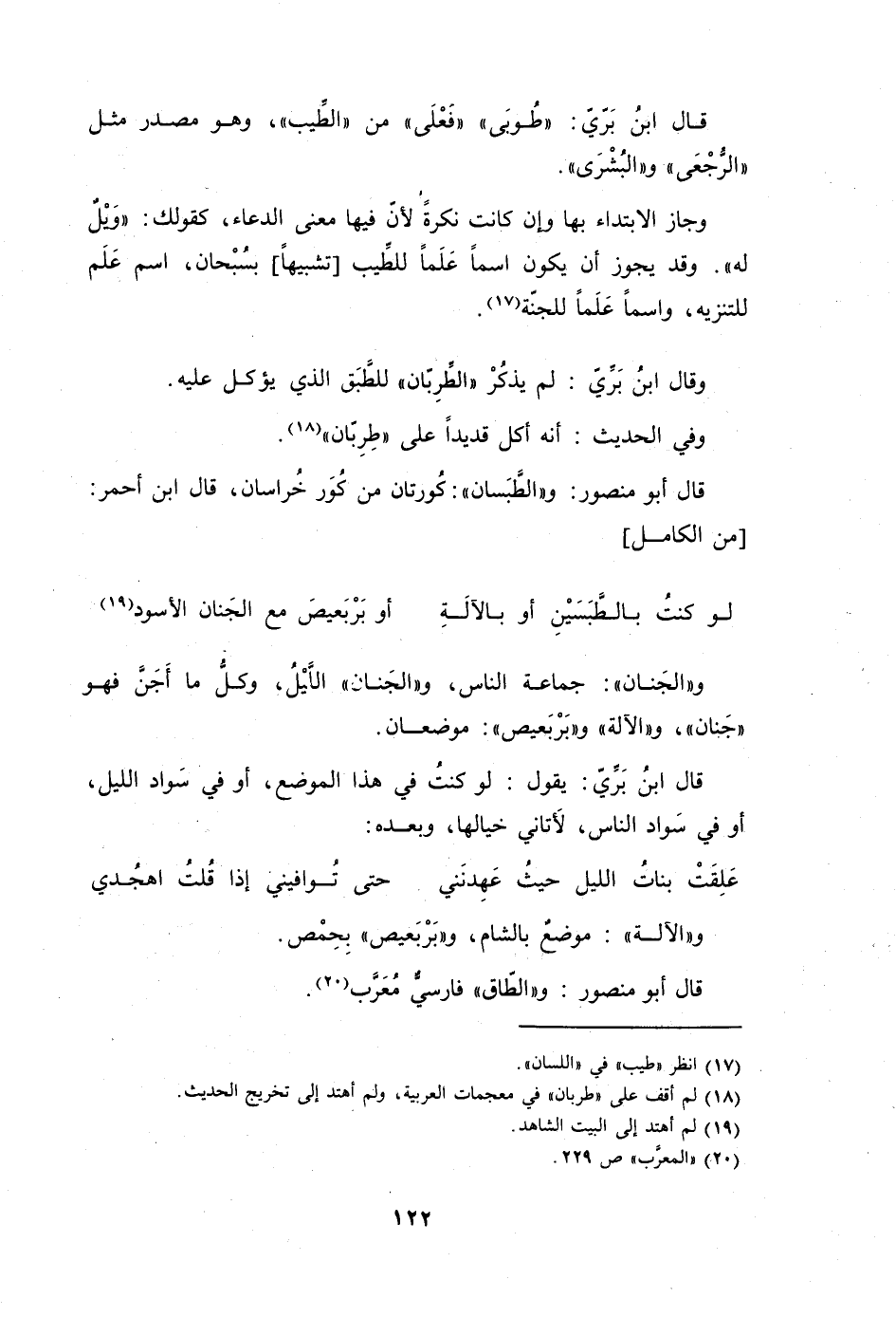 وَجَاز الِابْتِدَاء بهَا وَإِن كَانَت نكرَة لِأَن فِيهَا معنى الدُّعَاء كَقَوْلِك ويل لَهُ وَقد يجوز أَن يكون اسْما علما للطيب تَشْبِيها بسبحان اسْم علم للتنزيه واسما علما للجنة
