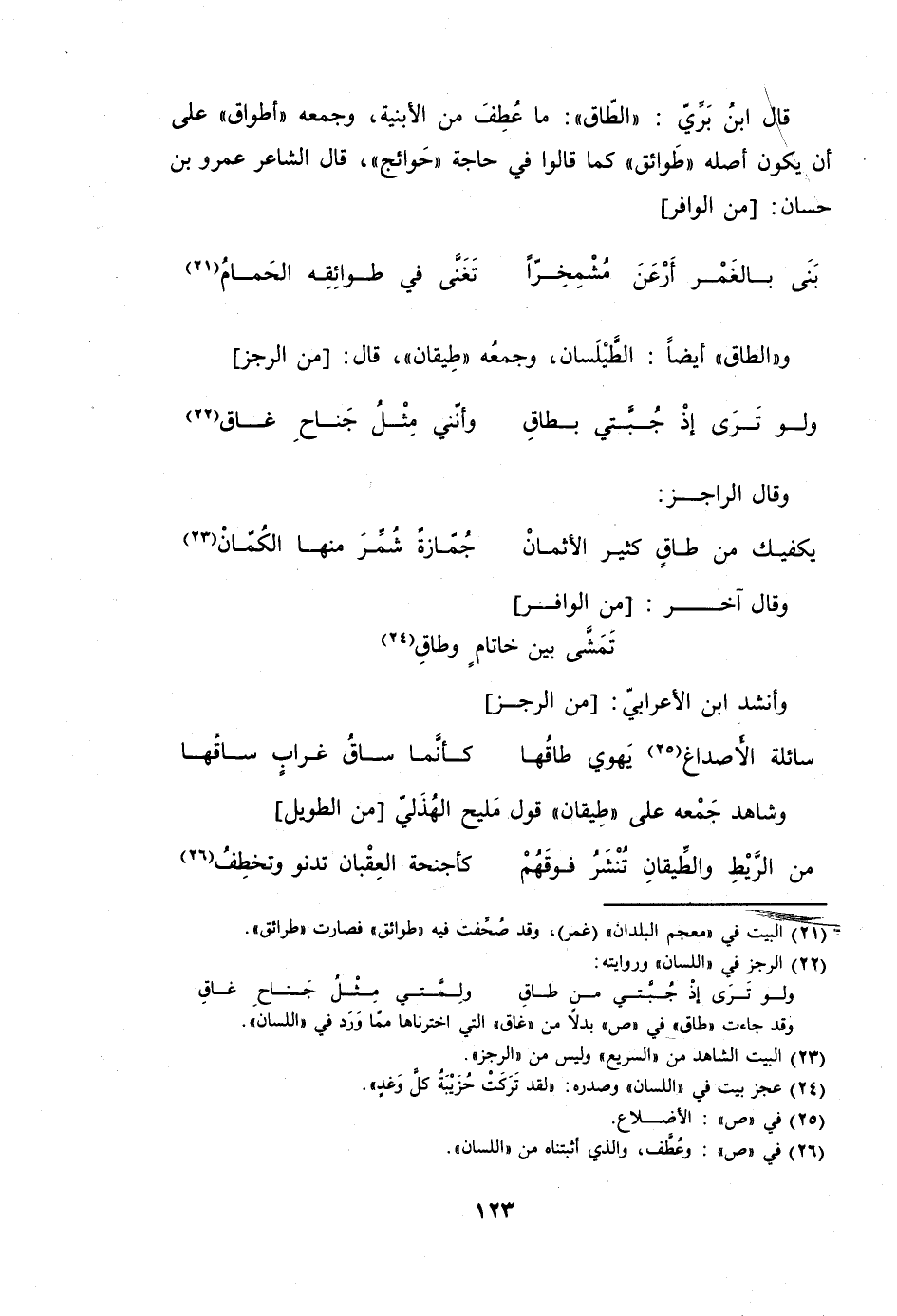 قَالَ ابْن بري الطاق مَا عطف من الْأَبْنِيَة وَجمعه أطواق على أَن يكون أَصله طوائق كَمَا قَالُوا فِي حَاجَة حوائج قَالَ الشَّاعِر عَمْرو بن حسان