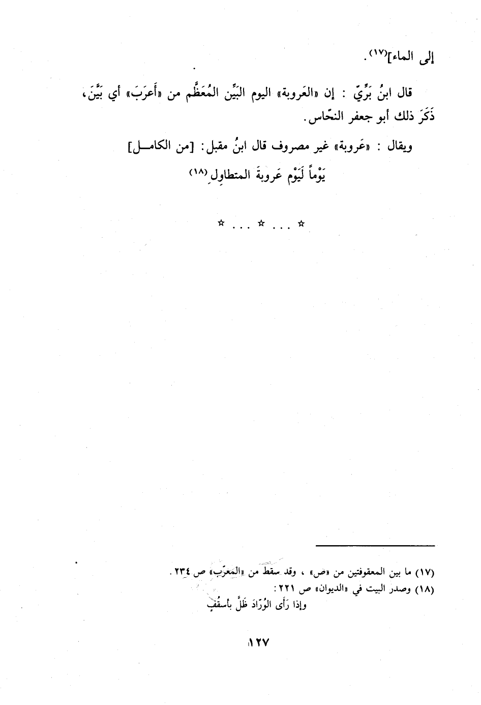 قَالَ ابْن بري إِن الْعرُوبَة الْيَوْم الْبَين الْمُعظم من أعرب أَي بَين ذكر ذَلِك أَبُو جَعْفَر النّحاس