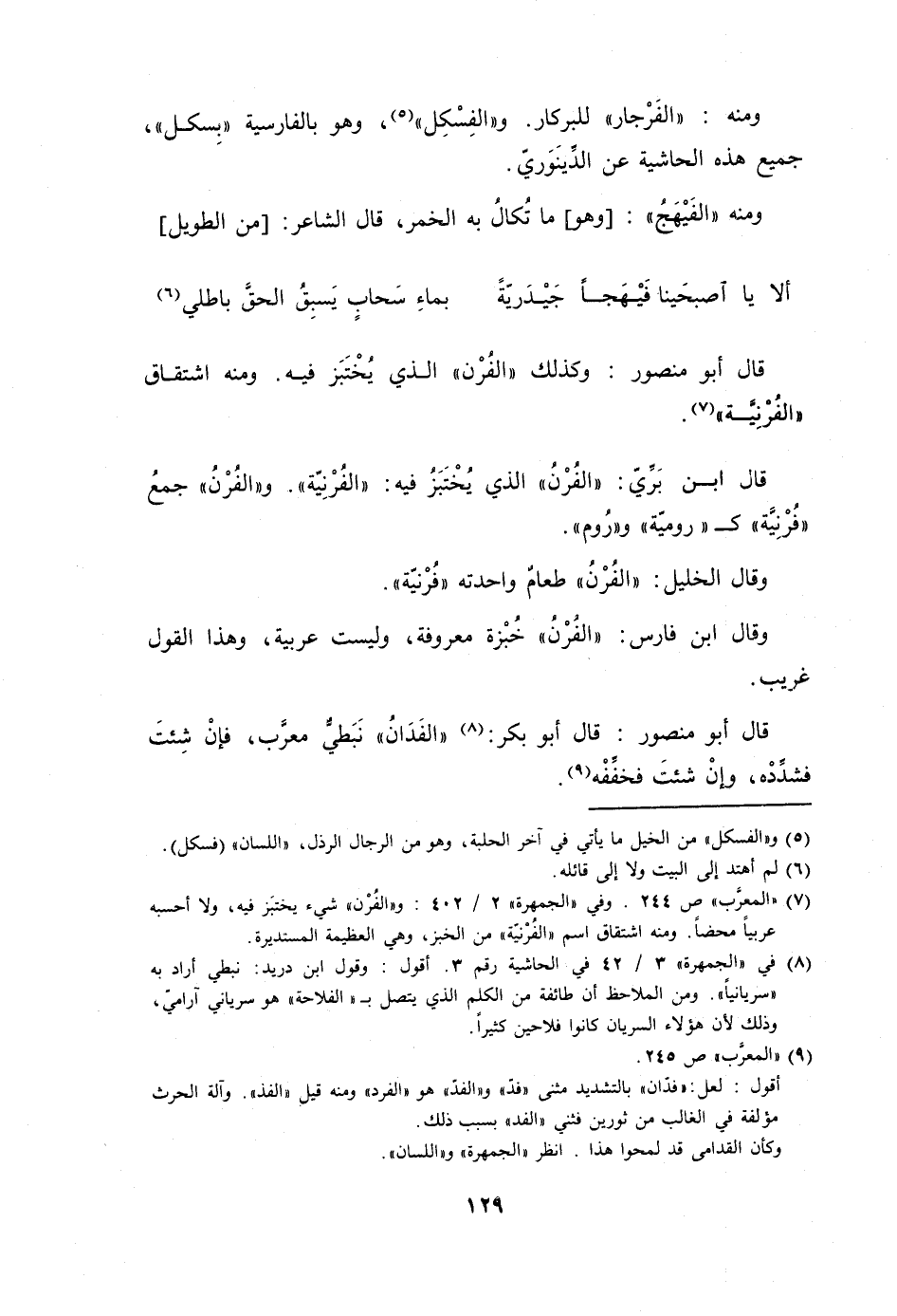 وَقَالَ ابْن فَارس الفرن خبزه مَعْرُوفَة وَلَيْسَت عَرَبِيَّة وَهَذَا القَوْل غَرِيب