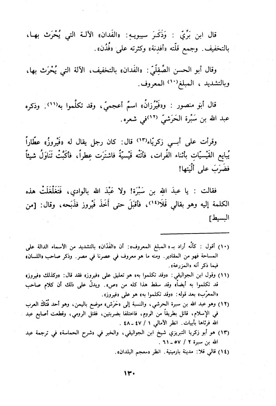 قَالَ أَبُو مَنْصُور وفيرزان اسْم أعجمي وَقد تكلمُوا بِهِ وَذكره عبد الله بن سُبْرَة الْحَرَشِي فِي شعره