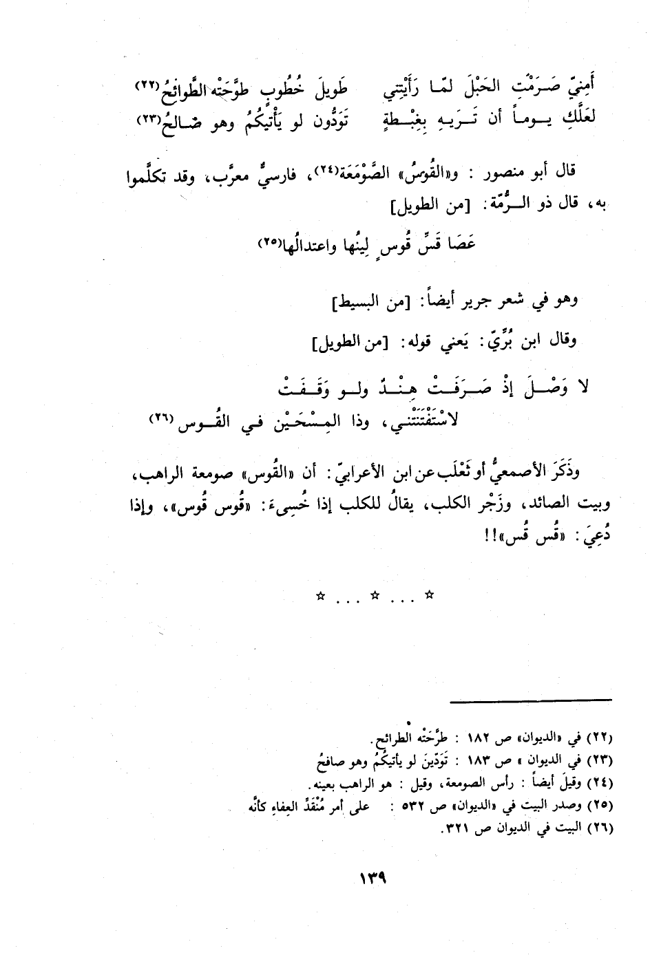 قَالَ أَبُو مَنْصُور والقوس الصومعة فَارسي مُعرب وَقد تكلمُوا بِهِ قَالَ ذُو الرمة