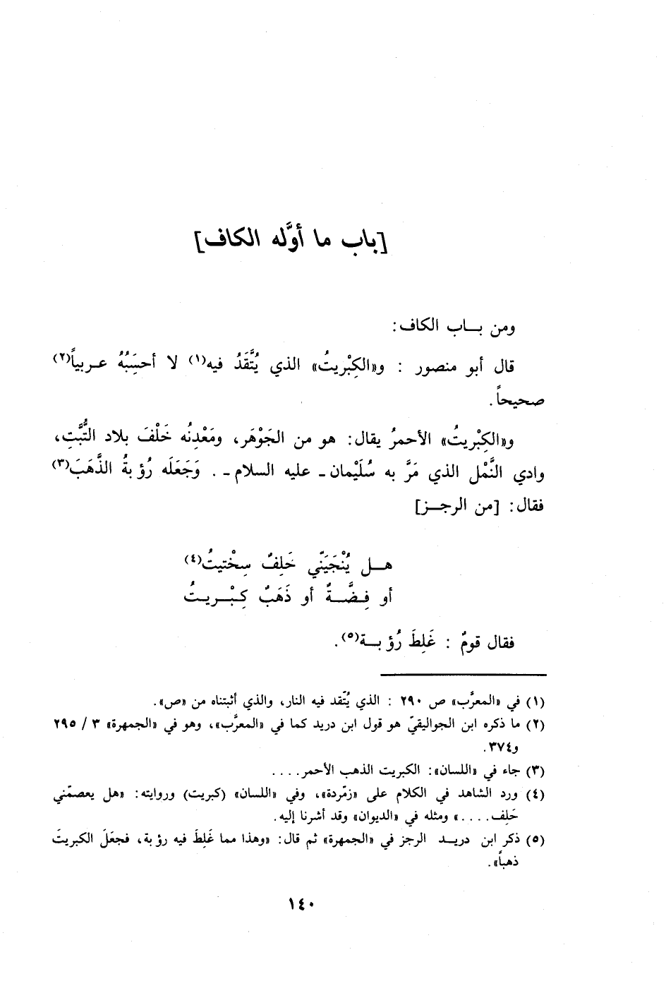 قَالَ أَبُو مَنْصُور والكبريت الَّذِي يتقد فِيهِ لَا أَحْسبهُ عَرَبيا صَحِيحا