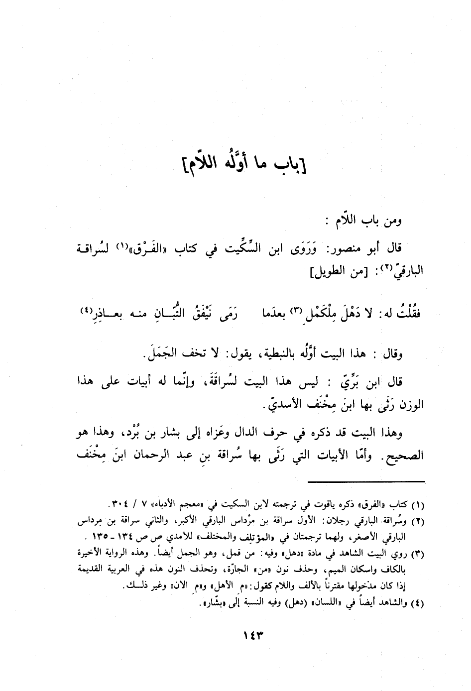 قَالَ أَبُو مَنْصُور وروى ابْن السّكيت فِي كتاب الْفرق لسراقة الْبَارِقي