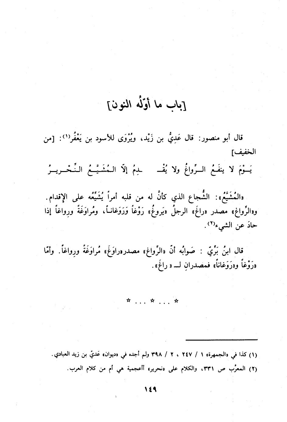 (يَوْم لَا ينفع الرواغ وَلَا يقدم ... إِلَّا المشيع النحرير) // من الْخَفِيف //