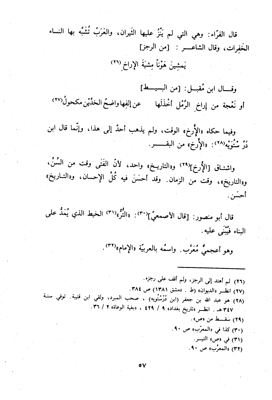 وَفِيمَا حَكَاهُ الأرخ الْوَقْت وَلم يذهب أحد إِلَى هَذَا وَإِنَّمَا قَالَ ابْن درسْتوَيْه الإرخ من الْبَقر