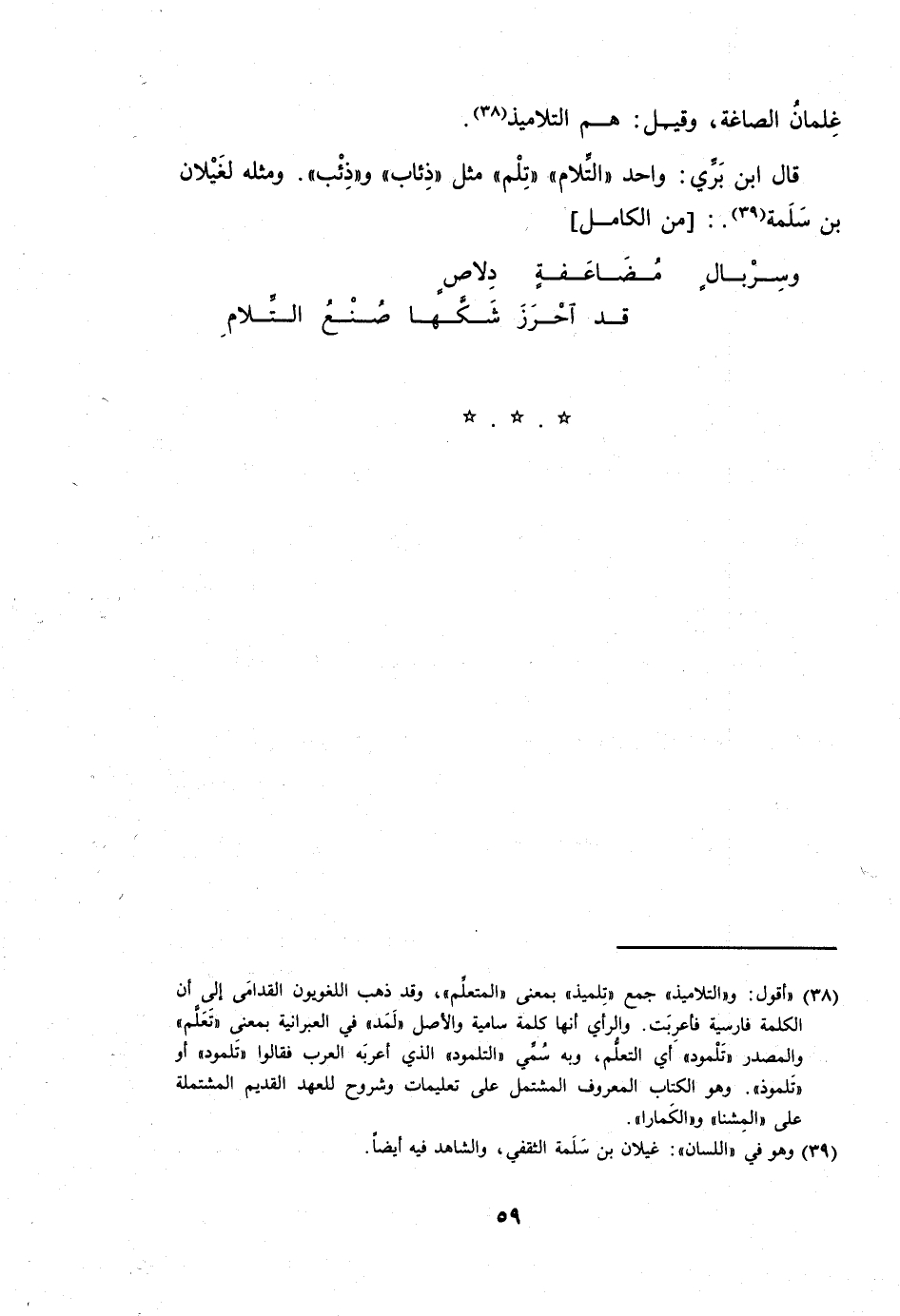قَالَ ابْن بري وَاحِد التلام تلم مثل ذئاب وذئب وَمثله لغيلان بن سَلمَة