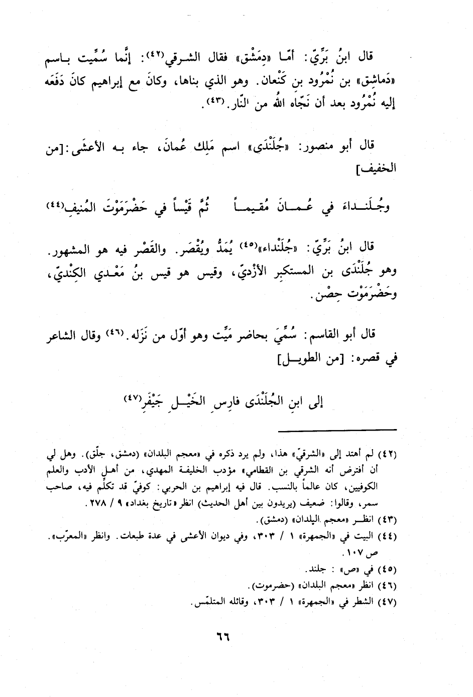 (وجلنداء فِي عمان مُقيما ... ثمَّ قيسا فِي حَضرمَوْت المنيف) // من الْخَفِيف //